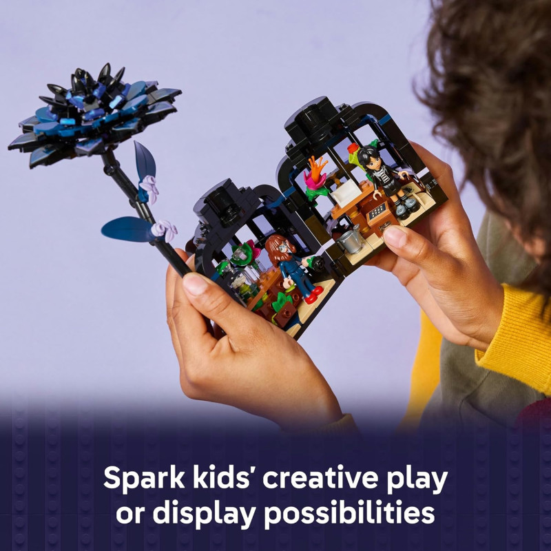 Jeu de construction d'une fleur noire pour fille ou garçon dès 9 ans – Les fans de la série TV Mercredi seront ravis de construire le set Le dahlia noir contenant un vase, une fleur et bien plus Fleur mystérieuse – Le design de ce set permet de fermer le vase du dahlia noir LEGO ; l’intérieur du vase contient notamment les vitres d’une mini serre, un espace de jeu et un meuble amovible 2 mini-poupées LEGO Mercredi – Les enfants plongent dans le jeu de rôle et rejouent des scènes de la première saison de la série avec les mini-poupées de Mercredi Addams et de la professeure Marilyn Thornhill Un jouet plein de mystère – Ce set à construire inspiré de la série TV Mercredi se referme grâce au dahlia noir : ouvert, il révèle des détails de la série et propose de nombreuses possibilités narratives Cadeau pour une fille ou un garçon dès 9 ans, fan de Mercredi Addams – Ce jeu de construction est un cadeau original à offrir pour un anniversaire ou Halloween à un fan de la série TV Mercredi Instructions intuitives – L’application LEGO Builder guide les fans et leur permet de vivre une aventure de construction intuitive : ils peuvent zoomer, faire pivoter les modèles en 3D, sauvegarder leurs sets et suivre leur progression Stimulez l’imagination des enfants – Les sets LEGO Mercredi accompagnent les jeunes passionnés de mystère dans leur quête de la vérité, avec des options de construction et des détails créatifs qui offrent de nombreuses possibilités narratives
