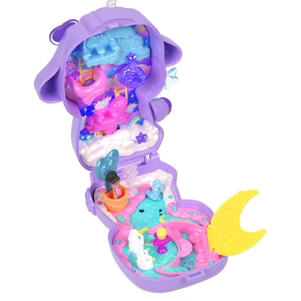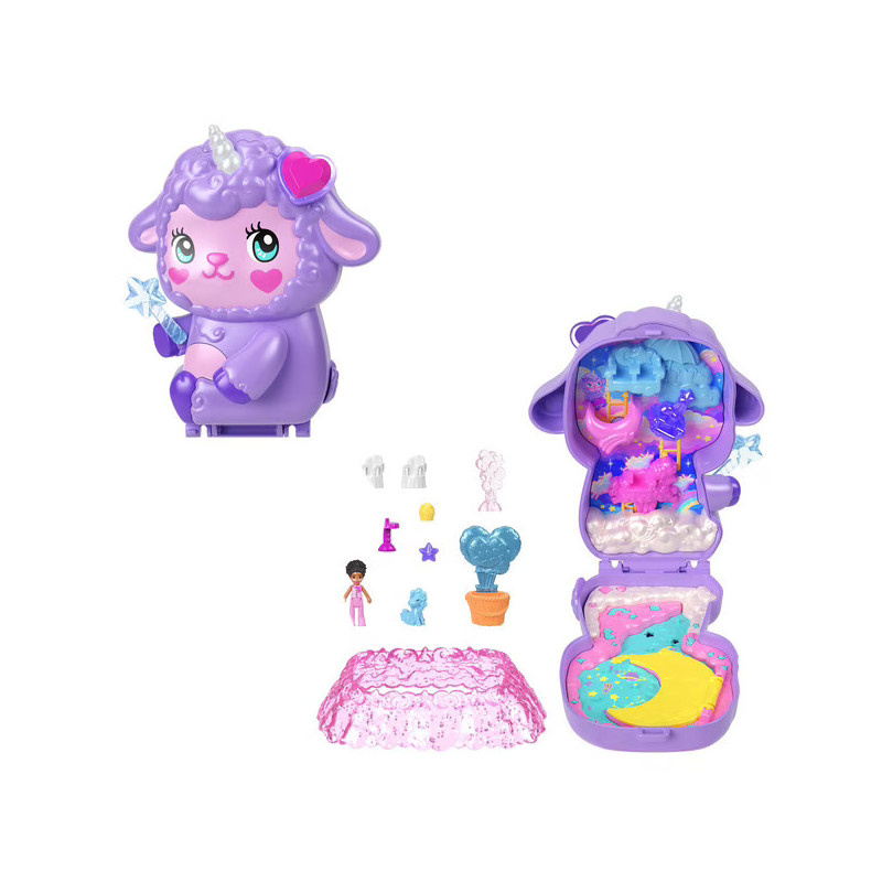 Offrez à votre enfant un univers magique avec ce coffret Polly Pocket en forme d’adorable agneau licorne.