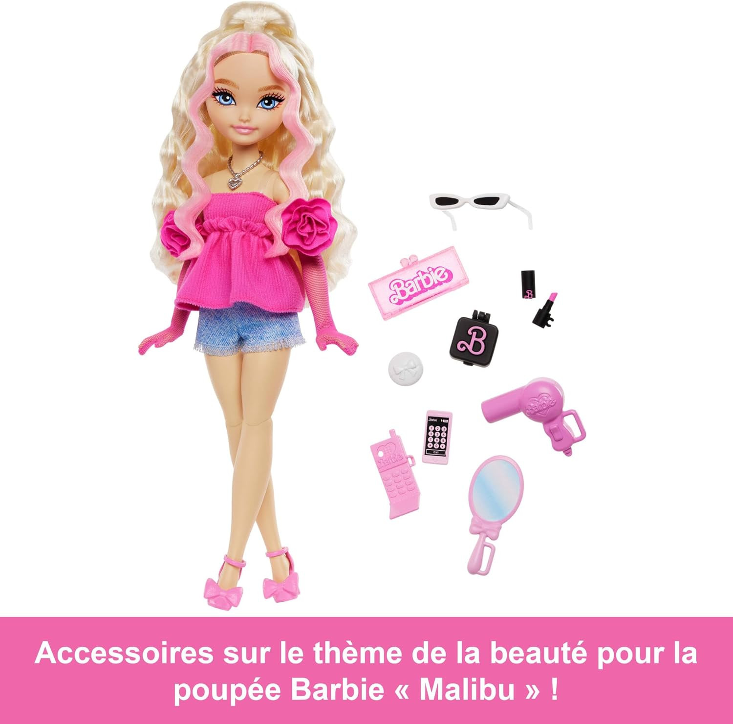 Les poupées Barbie Dream Besties sont donc la toute nouvelle génération de poupées Barbie et elles seront absolument parfaites pour accompagner votre enfant dans le développement de son imagination et de sa créativité. En effet, ces adorables poupées vont offrir aux enfants un nouvel univers et des possibilités de jeu infinies ! Chaque poupée a sa propre personnalité et son propre style. Ainsi, dans ce coffret, votre enfant pourra découvrir la magnifique poupée à l'effigie de Malibu. Malibu est une vraie fan de mode (et de rose) : elle arbore donc une magnifique tenue composée d'un haut sans bretelles roses qu'elle accompagne d'une paire de gants joliment décorés de roses qui viennent ajouter une touche tendance à son look. Elle complète sa tenue avec un incontournable et indémodable short en jean et une paire d'escarpins roses ornés d'un ruban. Bien sûr, elle est accompagnée de tous les accessoires indispensables : un rouge à lèvres rose pour les retouches maquillage, un poudrier, un téléphone portable, un miroir de poche, un grand miroir, un sèche-cheveux, une paire de lunettes de soleil et son adorable petit sac à main pochette rose. La poupée Malibu arbore une magnifique chevelure blonde ondulée et soyeuse avec deux mèches roses sur le devant. Les enfants pourront donc s'amuser à la coiffer et à lui créer un nouveau style à l'infini. Avec son visage tout doux, les enfants pourront facilement s'identifier à leur magnifique poupée Dream Besties Malibu. Enfin, grâce à ses nombreux points d'articulation, notamment au niveau des genoux et des coudes, la poupée va offrir une jouabilité optimale aux enfants. Ils vont donc pouvoir s'inventer des milliers d'aventures et même s'amuser à collectionner les autres poupées Barbie Dream Besties (vendues séparément) comme Brooklyn, Teresa et même Renée ! Cette sublime poupée Dream Besties à l'effigie de Malibu sera donc une idée cadeau idéale pour tous les fans de poupées Barbie !