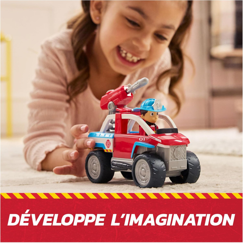 Le quad de Ryder sous forme de voiture de pompiers est équipé de roues fonctionnelles et ressemble au véhicule de la série d'animation, avec le design et le style authentiques de la Pat Patrouille