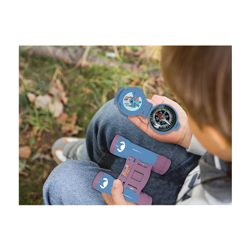 EXPLOREZ LE MONDE AVEC STITCH - Encouragez l'esprit d'aventure et la curiosité de vos enfants avec ce kit complet d'aventurier, et partez en exploration avec Stitch, Lilo, Angel et Leroy ! COMMUNICATION À DISTANCE - Restez en contact et partagez vos découvertes d'une portée jusqu’à 120m avec les talkies-walkies facilement transportables grâce à leur clip ceinture. Parfaits pour les jeux en plein air. OBSERVATION ATTENTIVE - Découvrez les plus beaux paysages ou partez à la recherche d'objets avec les jumelles à l'effigie de Stitch. Vos enfants apprendront à observer leurs environs, qu'ils soient sur terre, en mer ou en pleine nature. APPRENTISSAGE DE LA NAVIGATION - Initiez vos enfants aux principes de l'orientation avec la boussole d'imitation. Vous serez certain qu'ils retrouveront toujours leur chemin ! EXPÉDITIONS NOCTURNES - Poursuivez vos explorations de nuit avec la lampe torche robuste. Petite et pratique, vous pourrez même l'utiliser pour envoyer des messages codés à vos amis. QUALITÉ LEXIBOOK - Appréciée des enfants, approuvée par les parents. Marque de jouets renommée et certifiée, Lexibook propose des produits intelligents, de qualité et sûrs, pour un achat en toute confiance.