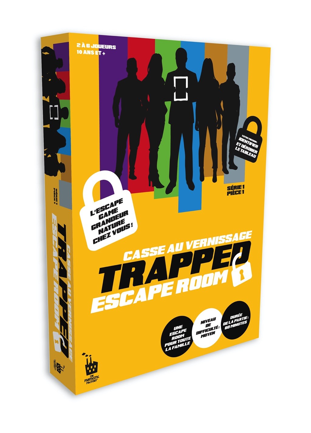 TRAPPED, l’escape game grandeur nature chez vous ! Immersion garantie ! Le seul escape game qui transforme physiquement l’une de vos pièces en véritable Escape room ! Intrigue : Vous êtes conviés au vernissage de la richissime famille Harrington par Charles, le benjamin. Il vous a confié une mission : identifier puis voler l’un des tableaux d’art de la collection familiale, mais lequel? Vous devrez aussi trouver parmi les 4 employés celui qui vous aidera à quitter le vernissage. Et enfin il faudra déverrouiller la porte de sortie en résolvant l’énigme finale !