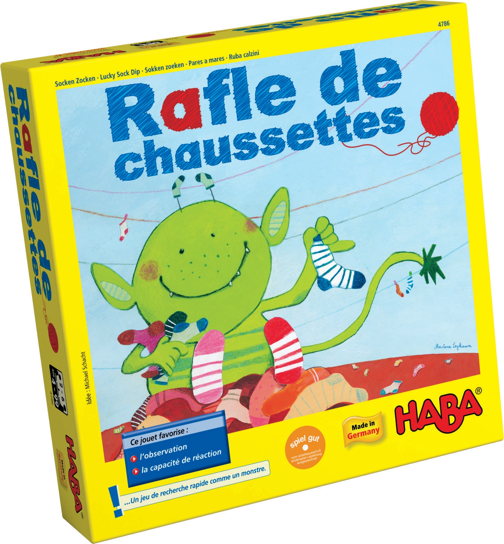 Le monstre aux chaussettes vient à nouveau de mettre tout sens dessus dessous dans l’armoire ! Qui va trouver les bonnes paires de chaussettes dans ce pêle-mêle ? Les joueurs fouillent tous en même temps dans le tas de chaussettes. Zut alors, les chaussettes se ressemblent toutes ! Qui va trouver le plus de paires ?