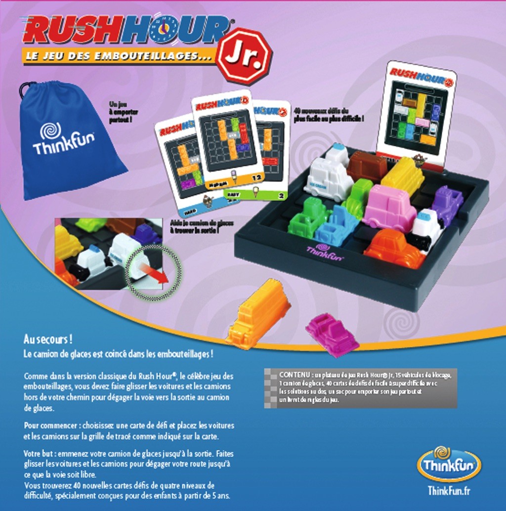 Comme dans Rush Hour®, le célèbre jeu des embouteillages, faites glisser les voitures pour dégager la voie et sortir le camion de glaces. 40 nouvelles cartes défis et 4 niveaux de difficulté, spécialement conçues pour les enfants de 5 ans.