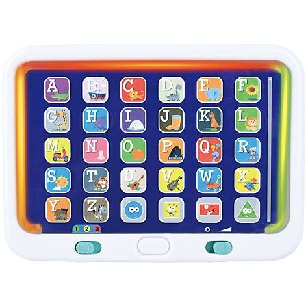 • Cette tablette Kidway est équipée d’effets lumineux et sonores captivants qui rendent l’apprentissage amusant pour les enfants à partir de 12 mois. • Disponible en anglais ou en français, cette tablette permet aux enfants de découvrir les lettres, les animaux, les formes, les couleurs, les objets du quotidien, ainsi que les instruments de musique associés à chaque lettre. • La tablette est conçue pour être facile à utiliser et à manipuler par les petites mains. À retenir : • Éducatif : la tablette stimule l'apprentissage précoce des lettres, des formes et des couleurs tout en introduisant les enfants à de nouveaux mots de vocabulaire. • Ludique : les effets lumineux et sonores rendent l’expérience d'apprentissage amusante, encourageant les enfants à explorer et à interagir avec le contenu. • Polyvalent : avec la possibilité de choisir entre l'anglais et le français, la tablette offre une expérience bilingue qui favorise le développement linguistique dès le jeune âge. Cette tablette Kidway est parfaite pour les enfants à partir de 12 mois.