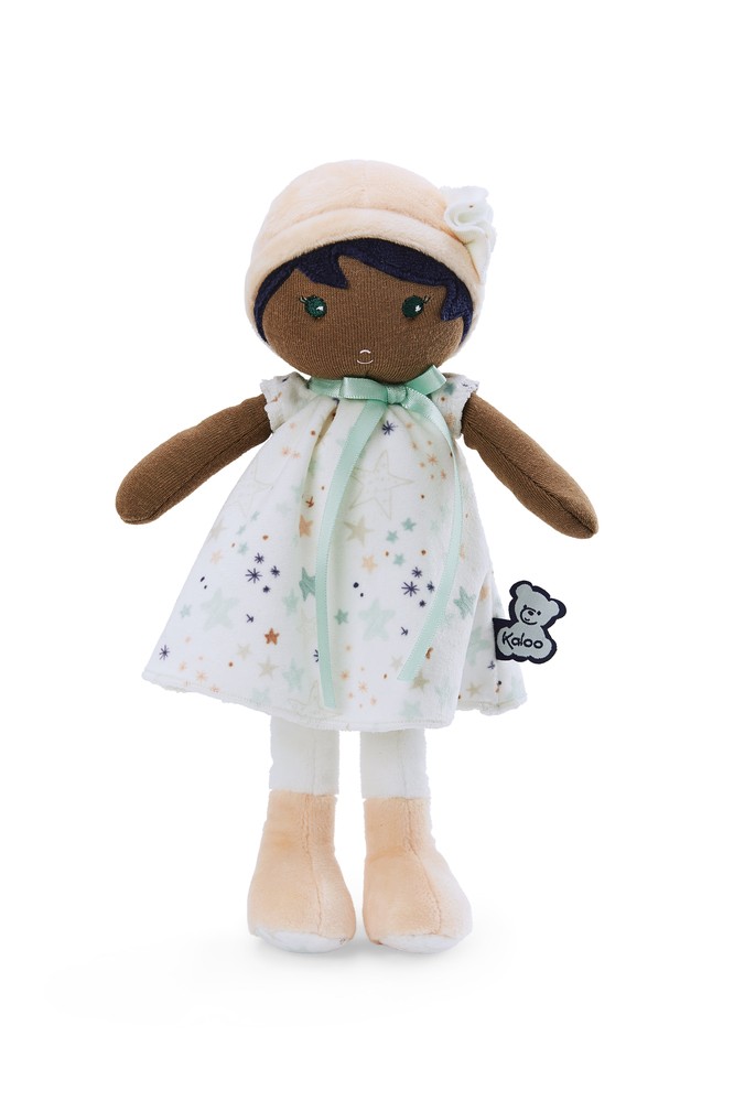 Manon K est la petite fille bohème de la gamme des Tendresses. Sa robe aux étoiles pastel invite à la rêverie. Tendre et douce, elle accompagnera bébé dans toutes ses découvertes et déplacements. Ensembles, elles vivront les plus belles aventures. De nombreuses finitions rendent Manon K encore plus charmante : ses bottes couleur pèche, assorti à son joli chapeau orné d’une fleur en harmonie à sa robe, un élégant nœud autour du cou. Un long ruban dans le dos permettant d’y écrire le prénom de votre enfant afin d’éviter les pertes. 32 cm, utilisable dès la naissance, lavable en machine, présentée dans un joli écrin (19,5 x 8,5 x 36 cm)