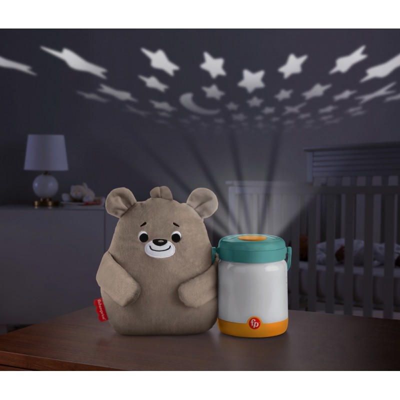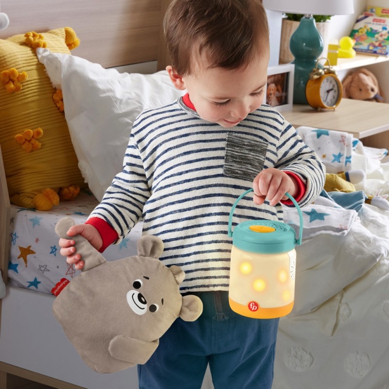 La Veilleuse Ourson et Lucioles de Fisher-Price sert de boîte à musique à poser dans la chambre de bébé. Elle diffuse de la musique personnalisable, des sons et de la lumière clignotante ou projette de la lumière au-dessus du berceau pour aider bébé à dormir. Quand bébé devient un peu plus grand, il pourra détacher la peluche pour lui faire des câlins et emporter sa veilleuse partout pour un peu de réconfort. Ne t’inquiète pas petit ours, les lucioles vont éclairer le chemin !