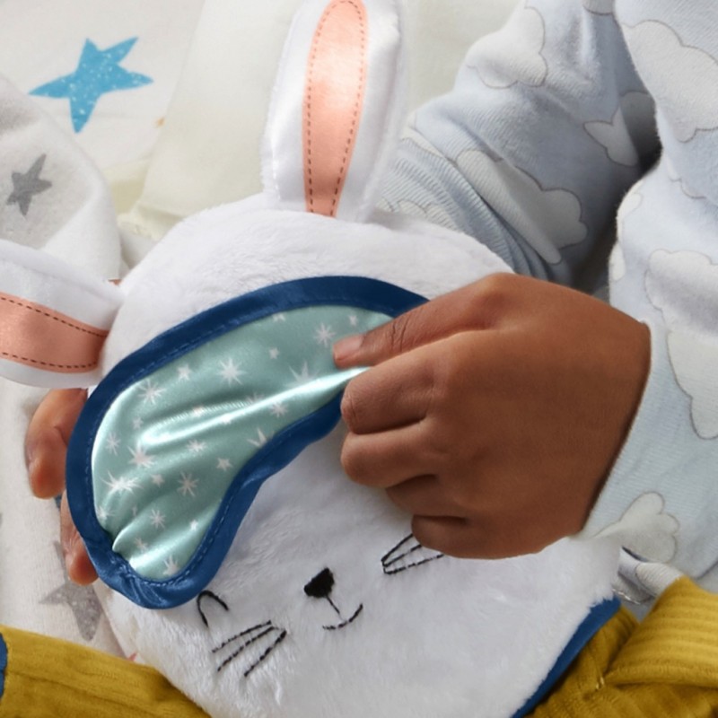 Peluche lapin avec musique et veilleuse pour apprendre aux enfants à partir de 18 mois à s’endormir.