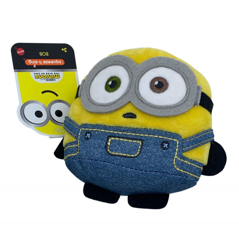 Ces peluches Minions Presse et Chante d'environ 10 cm émettent musique et sons amusants. Chaque personnage fan de bananes rit et chante une note : do, ré, mi, fa ou sol. Collectionnez Bob, Otto, Kevin, Stuart et Carl pour les faire chanter en chœur ou inventer des chansons. Les enfants vont adorer presser, écouter et câliner ces peluches Minions toutes douces de 10 cm. Ils vont pouvoir exprimer leur créativité façon Minions et créer une mélodie ! Chaque peluche Minion musicale vendue séparément