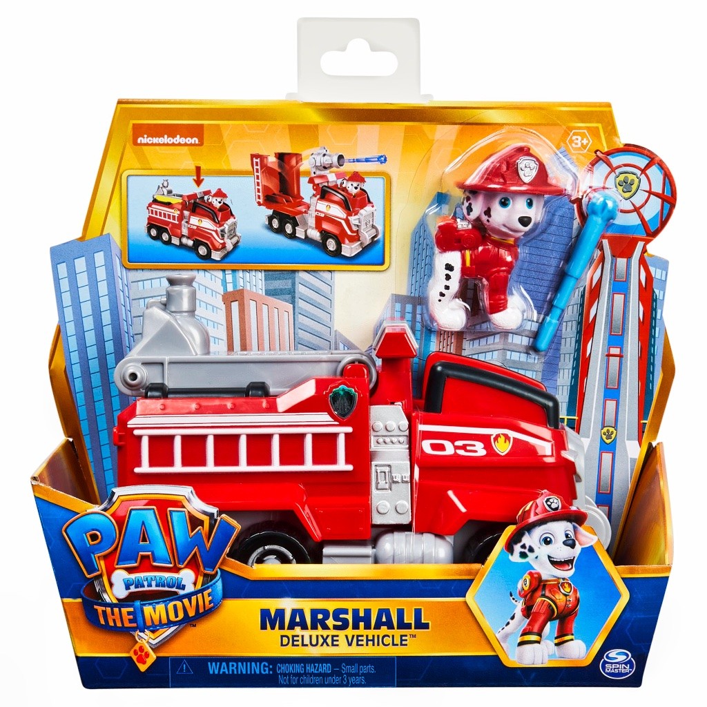 Tes personnages préférés officiels de La Pat' Patrouille - Le Film dans leur véhicule de secours. Avec fonction transformation. Plusieurs modèles disponibles. Dès 3 ans.