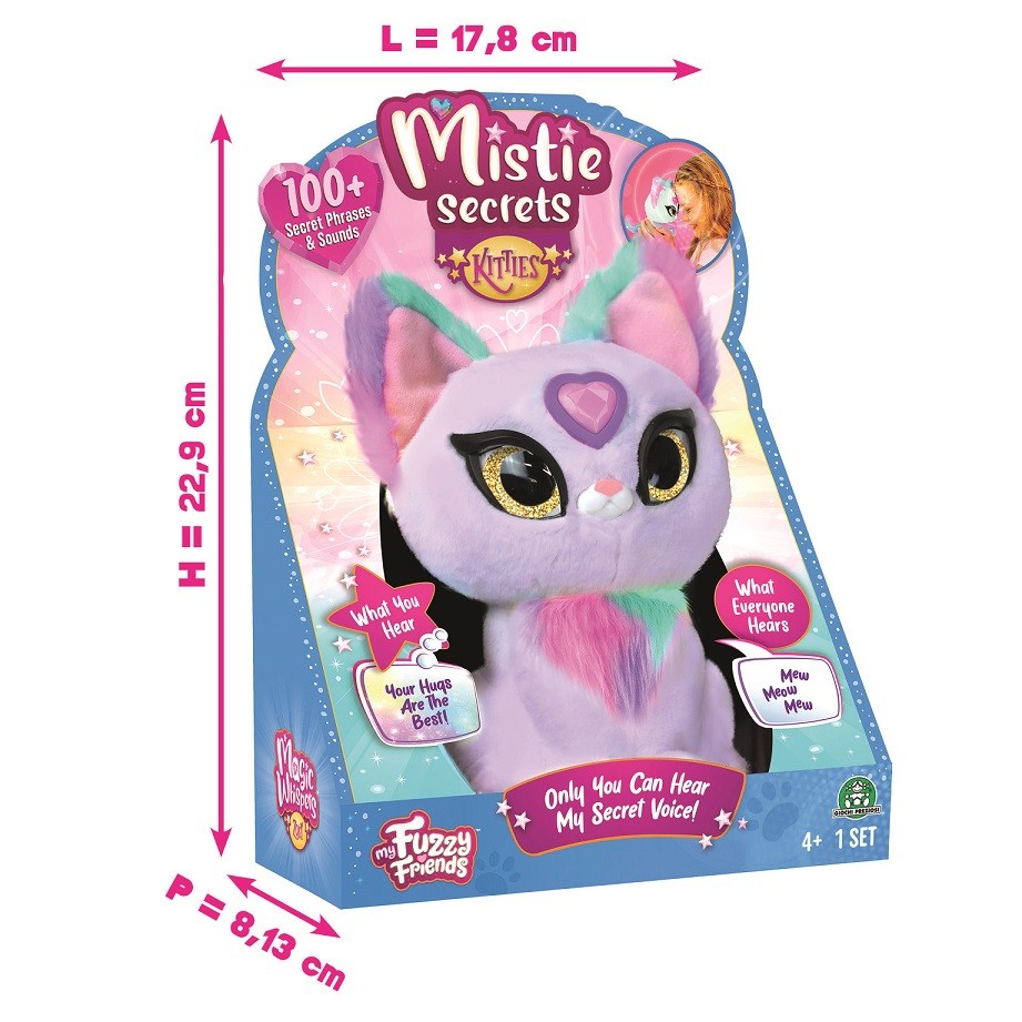 Pssst…Mistie a des secrets à te dire, et toi seule peut les entendre ! Grâce au cœur situé magique sur son front, elle communique avec toi ! Approche Mistie de ton front, et écoute! Mistie te dira comment elle se sent et ce qu'elle a envie de faire. Quand le cœur magique s'illumine, c'est qu'elle a un secret à te dire…juste à toi ! 3 modes de jeu : Normal, Psychique et Humeur.