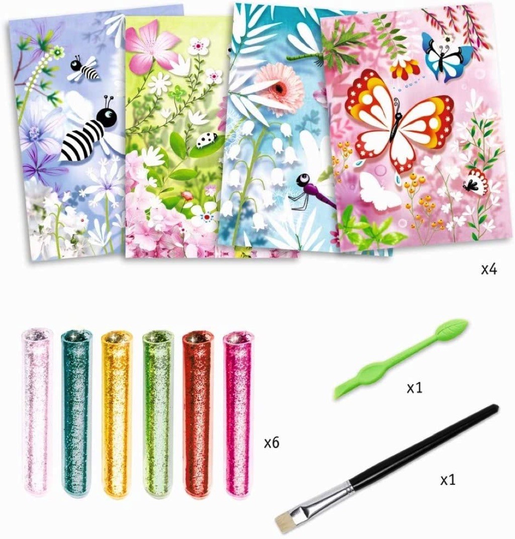 Djeco vous présente ses tableaux à pailleter papillons pour illuminer les dessins.
