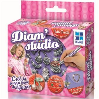 Avec Diam Studio Tutti Frutti, crée ta propre ligne de bijoux et réalise 9 créations uniques ! Décore les différents modèles avec les feutres effet "diamant" (saphir, diamant rose, émeraude, rubis, topaze) pour des bijoux briallants et colorés. Contient : 7 modèles, 5 accessoires, 3 feutres effet diamant, 8 adhésifs double face.