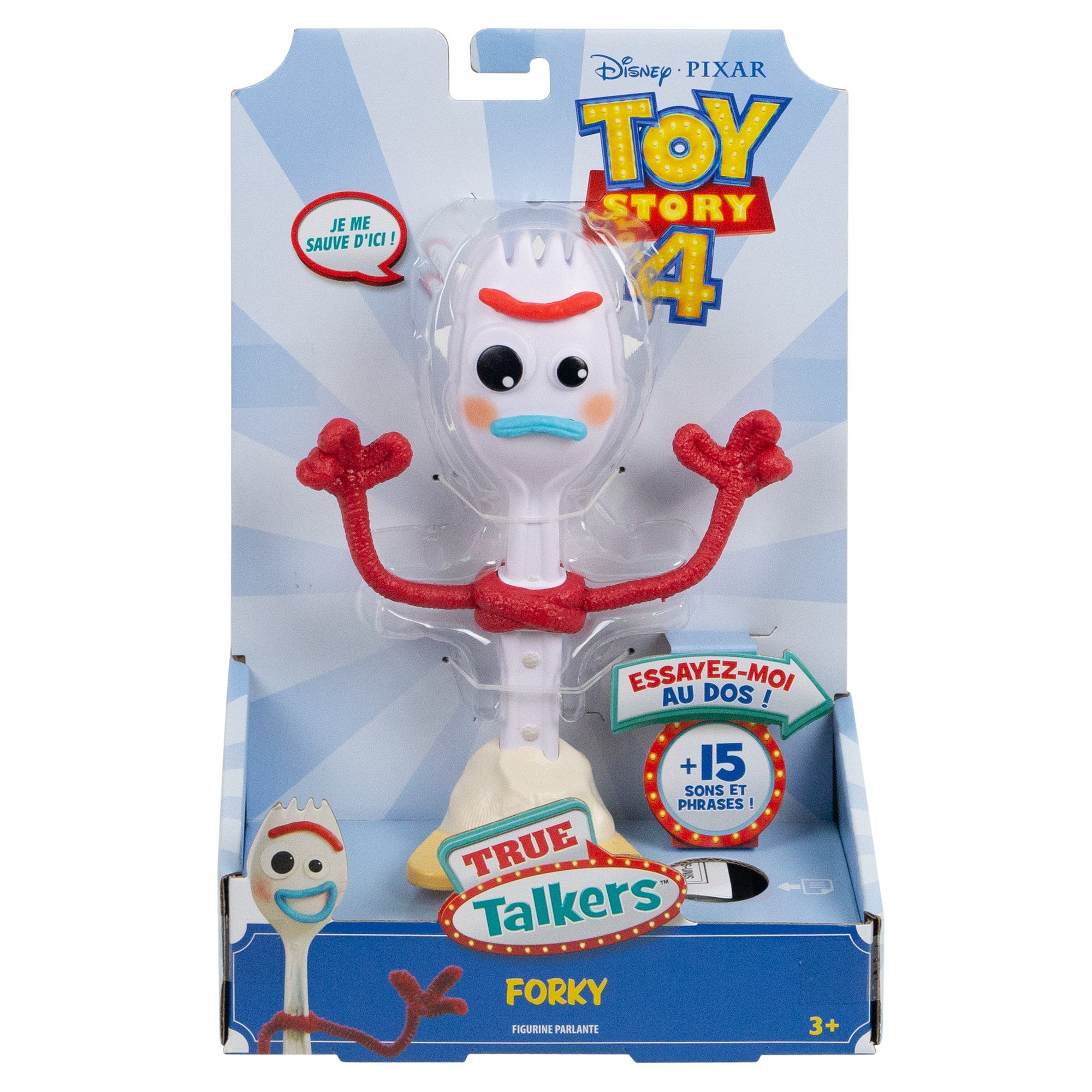 Les fans de Toy Story de Disney Pixar pourront rejouer des scènes du nouveau film avec cette figurine parlante ! Fourchette prend vie avec des expressions faciales vivantes et des répliques cultes comme « Ah. Ouah ! Ce n'est pas si mal d'être un jouet. C'est plutôt sympa.. » Et « On peut arrêter ? Mes pointes sont fatiguées. Revivez vos aventures préférées avec Fourchette et collectionnez aussi Buzz l’Éclair et Woody.