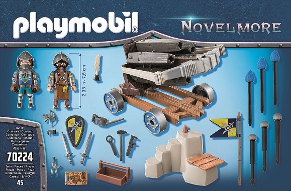 Le chevalier et le maître d'armes peuvent se défendre avec la baliste à six coups qui tire des projectiles. Dimensions : 14,5-17x12x9-16,5 (angle d'inclinaison) cm.