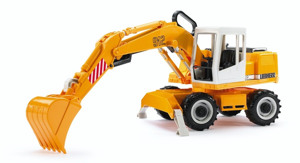 La pelleteuse Liebherr possède un bras entièrement articulé et des pieds pour la stabiliser, elle tourne sur elle-même a 360°c. Utilisable à l'intérieur comme à l'extérieur.