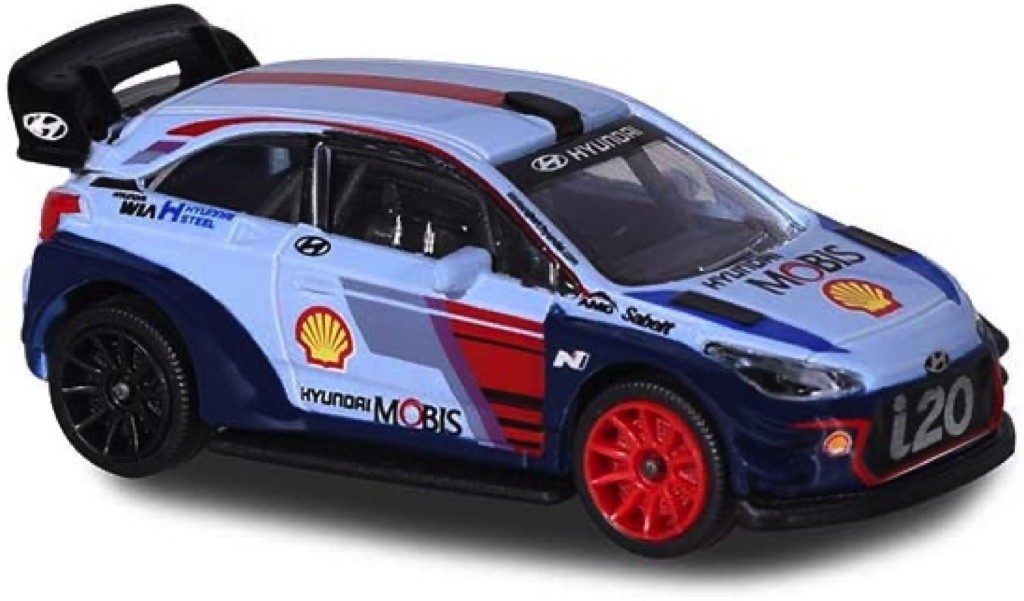 Véhicule en métal à l'échelle 1/64ème (7,5cm). Fait partie d'un assortiment aléatoire de 4 voitures de course WRC de différentes couleurs. Vendu à l'unité. Modèle selon disponibilité.