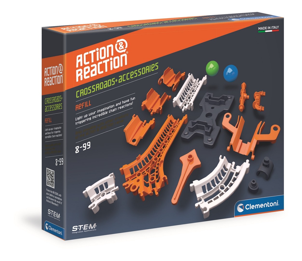 Un coffret fantastique, compatible avec toute la gamme Action & Réaction, pour créer des circuits encore plus époustouflants. Avec le croisement, tu pourras diviser tes circuits, changer la direction des billes et défier la gravité ! Un jeu parfait pour expérimenter les lois de la physique de manière amusante et créative.