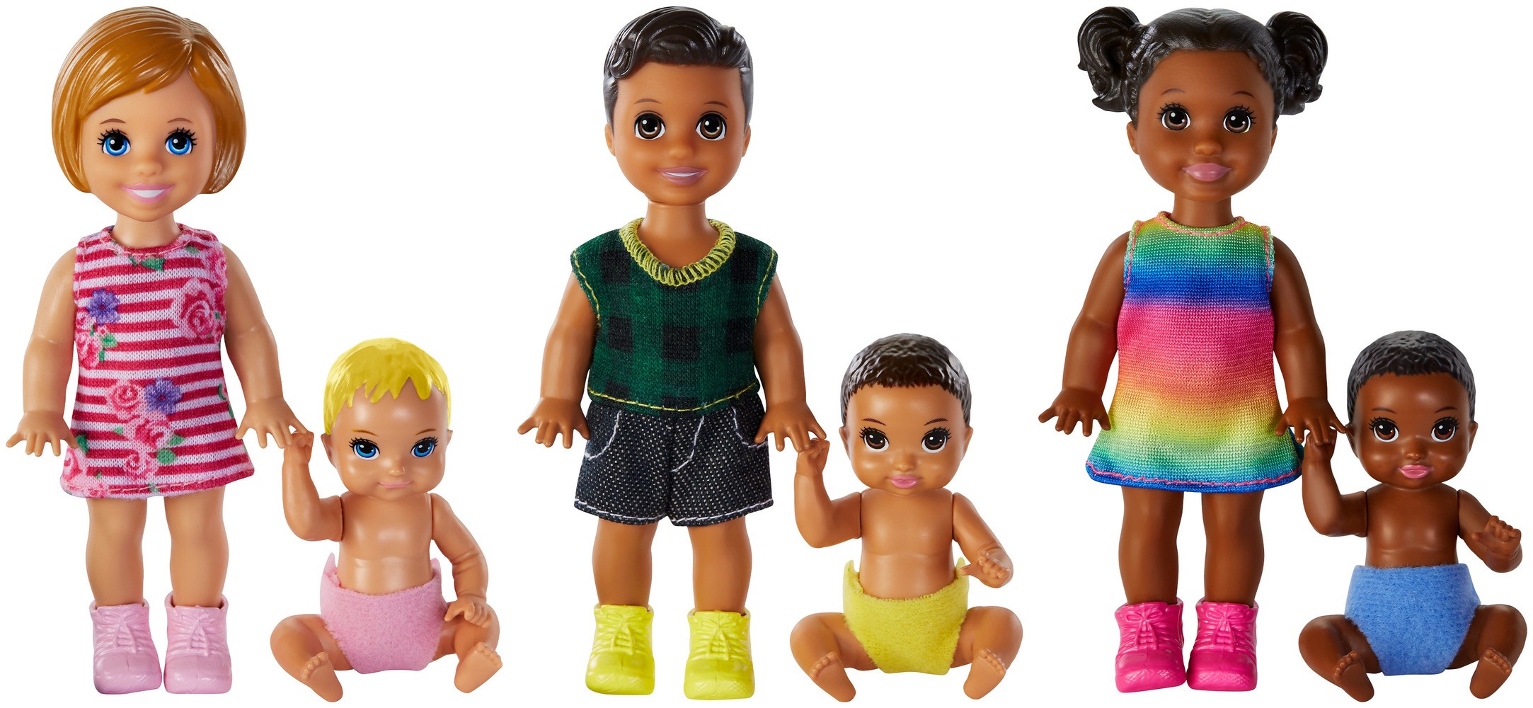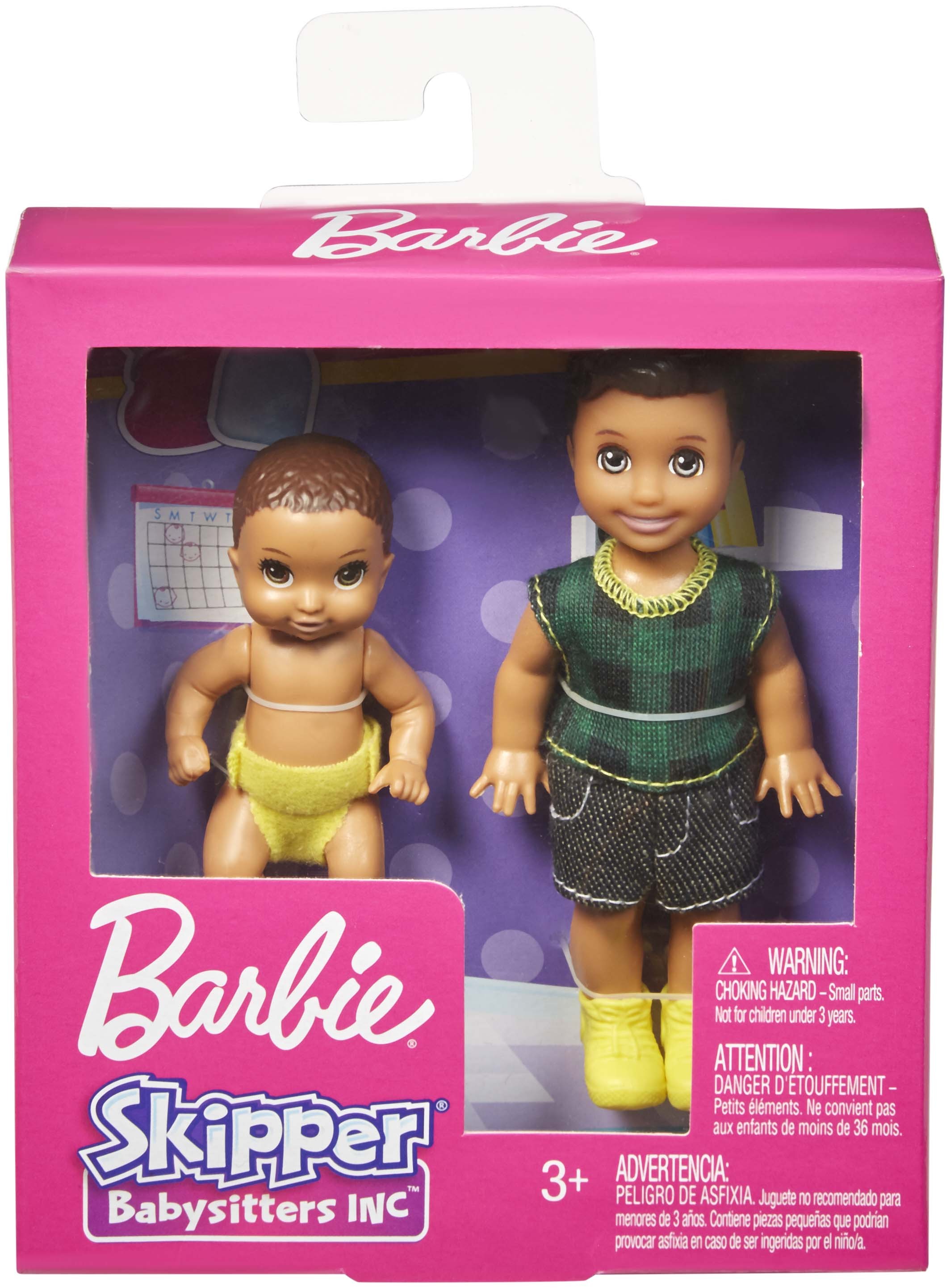 Les enfants peuvent jouer à la babysitter avec les coffrets Frère et Sœur Barbie Skipper Babysitters Inc., qui contiennent chacun une poupée jeune enfant et une poupée bébé !