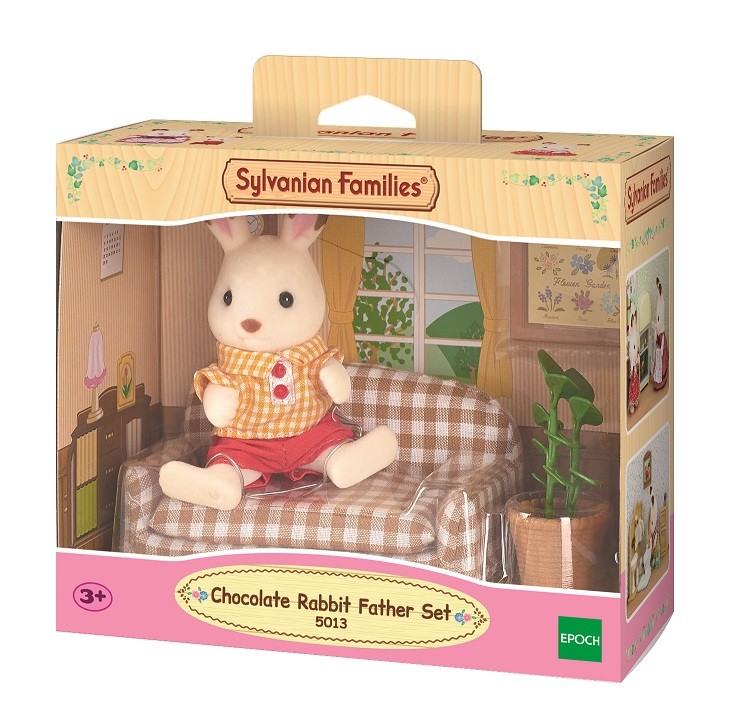 Inclus: 1 figurine papa lapin chocolat, 1 canapé, 1 cadre, 1 plante verte.