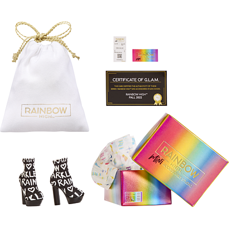 Tu peux créer ta nouvelle tenue préférée du jour en ajoutant une paire de chaussures ultra tendance. Chaque splendide paire de chaussures est soigneusement rangée dans une boite Rainbow High. Aucun détail n’est mis de côté, avec une pochette de rangement, du papier de soie et même un reçu ! Avec 27 paires de chaussures à choisir, tu peux créer les looks les plus incroyables pour toutes tes poupées Rainbow High. Les boites sont fermées, donc chacune est une surprise ! Âge requis : dès 3 ans Attention : Ce produit faisant partie d’un assortiment de plusieurs modèles, il nous est impossible de vous livrer un modèle ou un coloris précis. En commandant cet article, vous acceptez donc de recevoir un modèle en fonction de notre stock disponible. Vendu à l'unité